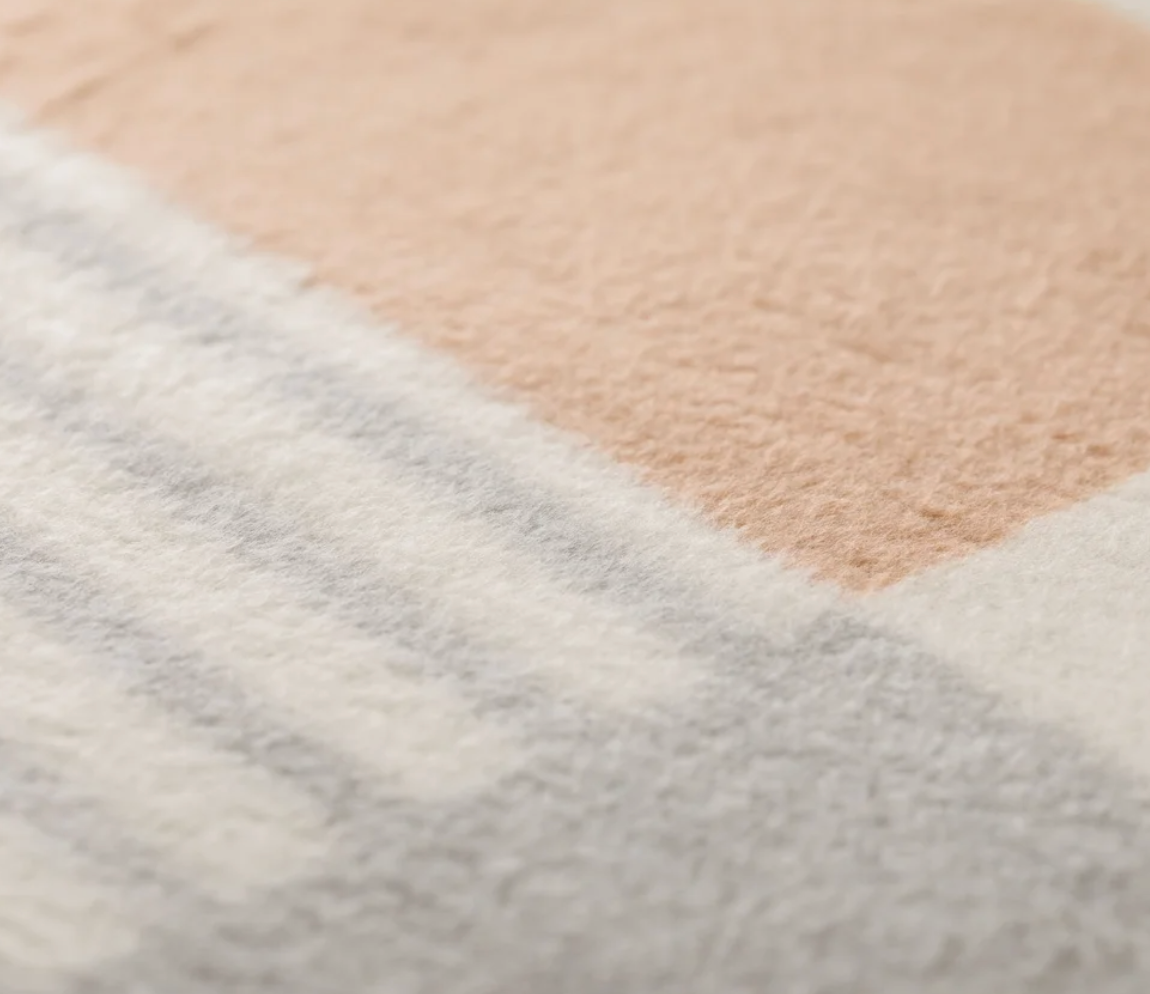 This jacquard velour blanket is cuddly soft and pleasantly warm. It looks great on both sides and is finished with a blanket stitched edge.